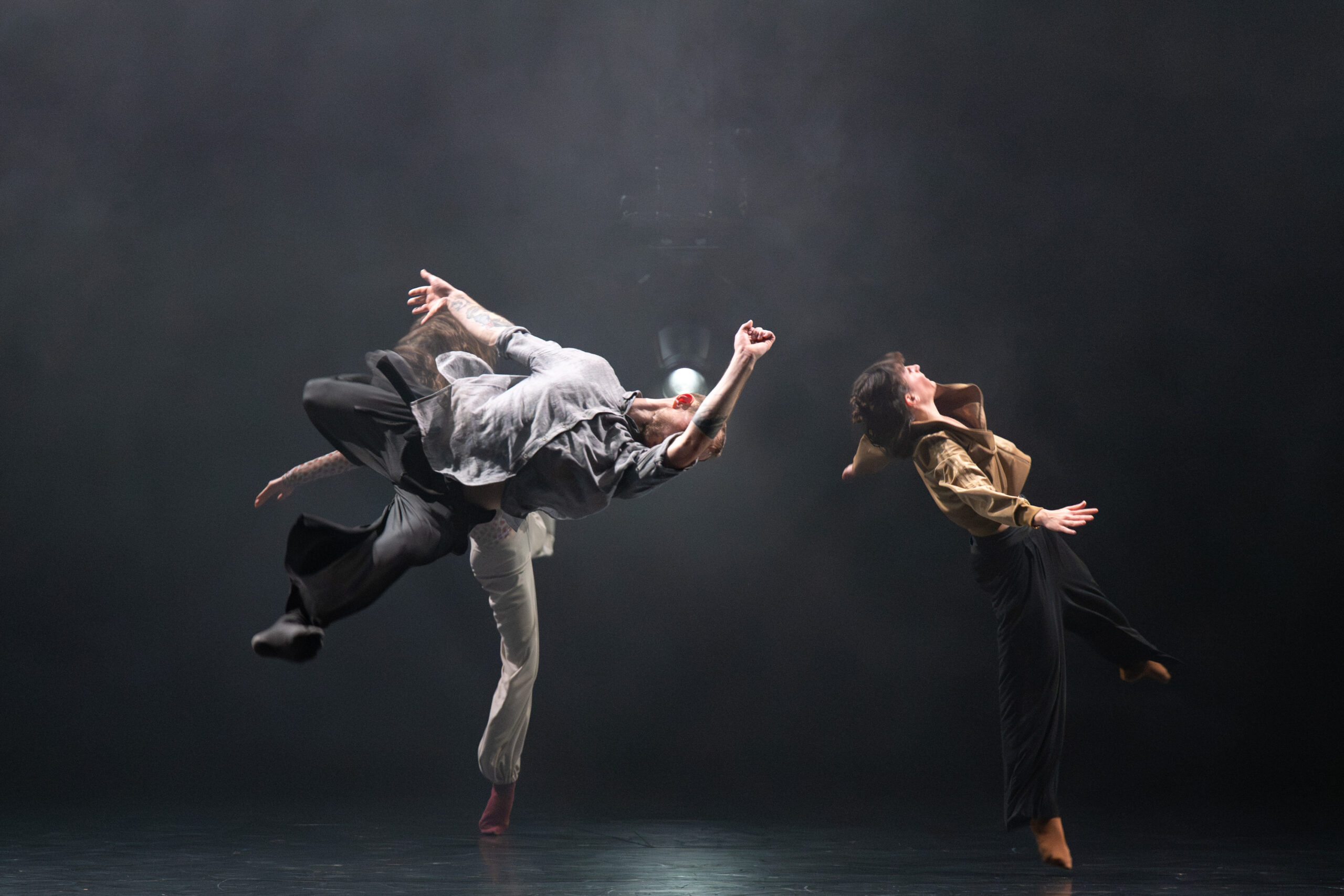 Leur danse fluide, intégrant des techniques hip-hop et contemporaines, ondule en spirales et en cercles, créant un flux de mouvement continu. Sceneweb